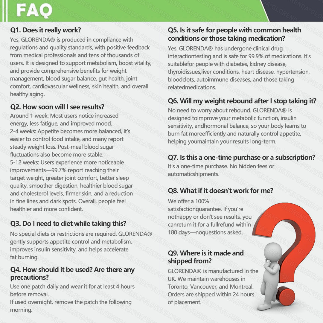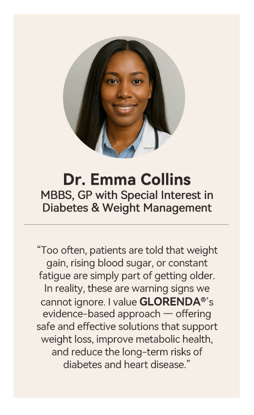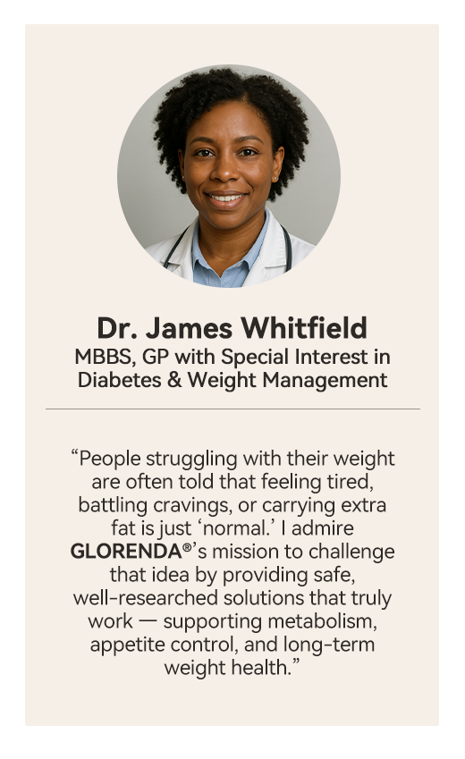 GLOR๐ฌNDAยฎ 10-in-1 Nano Microneedle Patch is a science-led, non-injectable option designed for adults who want genuine weight support without harsh routines or extreme approaches. At the core of the formula is our A-Blend Metabolic Support: Glucomannan, Berberine, and Cinnamon Extract, developed around a simple, realistic framework that helps weight management feel more achievableโfeeling full sooner, staying more settled after meals, experiencing fewer cravings (particularly for sweets and late-night snacking), and making progress that feels sustainable in everyday life. Glucomannan supports natural fullness, Berberine helps support a calmer post-meal response, and Cinnamon Extract supports steadier post-meal energy and appetite signals. NADโบ and Collagen Peptides support cellular energy and skin firmness, helping you feel more toned as your body changes. The rest of the formula provides whole-body support, including digestive balance, liver support, immune support, and consistent daily energyโso you feel better beyond the number on the scale. Manufactured in a GMP-certified facility that follows internationally recognised quality and safety standards and aligns with UK manufacturing and quality expectations, GLOR๐ฌNDAยฎ offers a simple, comfortable routine designed to support sustainable weight management and long-term wellbeing.